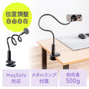 かなり硬くて太くて丈夫。位置を固定して使いたい iPhoneなどMagsafe製品を固定して使えるホルダー。フレキシブルだがかなり丈夫な作りで、位置を気楽に動かすには硬い。机上で位置を固定して使うならスタンドタイプやアームタイプの製品がいろいろあるので、カフェテーブルのような狭い場所で使ったり、ベッドサイドで寝ながら使うのがメインだろう。丈夫で、Masgafeの磁力も十分なので安定感があり、重量級のiPhoneでも安定して寝ながら使えるだろう