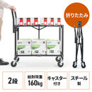 総耐荷重約160kg、棚1段あたり約80kgまで載せられる頑丈なスチール製ワゴンです。段ボールや備品、オフィス用品などを上下2段に分けてまとめて運べるため、何度も往復する手間を減らせます。重い荷物を扱う倉庫や事務所でも、作業効率を高めたい方におすすめです。