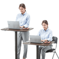 ※天板を高い位置に設定した場合、支柱が1本の設計なので、天板が若干傾きます。また、タイピングの際など多少ぐらつく場合が ございます。あらかじめご了承ください。