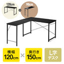 L字デスク シンプルデスク3 幅120cm 奥行150cm ブラックモニタアーム対応