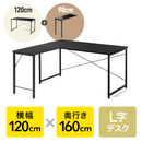 L字デスク シンプルデスク 幅120cm 奥行160cm ブラック モニターアーム 対応