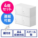 鍵付きでセキュリティ対策が可能なスチール製ロッカー。学校やオフィス、家庭でも使用できるコンパクトなミニロッカー。棚板付き。連結/スタッキングが可能でレイアウトに合わせて設置可能。説明書の収納に最適な扉トレー付き。セキュリティワイヤーの取り付けができ盗難防止対策も可能。ホワイト。4個セット。【WEB限定商品】
