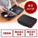 【春の行楽セール】セミハードトラベルポーチ ダブルルーム・ガジェット収納ケース ダブルファスナー 出張 旅行 メッシュ ポケット ブラック