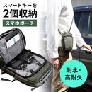 スマホポーチ スマートキーケース スマートキー2個収納 カード収納 防水 防塵 止水ファスナー 外側ポケット付き 小銭入れ カラビナフック キーリング カーキ