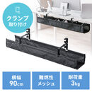 幅90cmのケーブル配線トレーで、電源タップや複数のケーブルをデスク下にまとめて収納できます。床やデスク周りに広がりがちなコード類を背面側へすっきり隠せるため、作業スペースの見た目を整えられます。ワイドデスクや機器が多い環境の配線整理におすすめです。