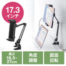 17.3インチ(相当)までのモバイルモニターを好きな位置に設置できるモバイルモニタースタンド。クランプ式なので、机の天板やラックの棚などに固定ができる。3関節と無段階アームで高さや角度の調整ができる。iPadなどの各社タブレットにも対応。【WEB限定商品】
