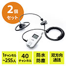 ツアーガイドや工場見学、講義での使用に便利なワイヤレスガイドシステム。子機でも発言できる、双方向通信対応。親機にも子機にもなるマルチ機能対応。遠隔で指示出し可能。最大40チャンネルに対応し、防水規格IP54に対応したガイド用イヤホンマイク。2台セット。【WEB限定商品】