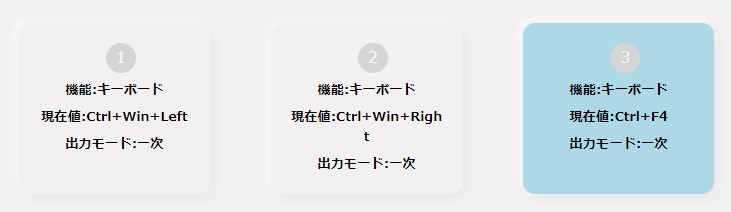 キーボードモード割り当て時に、出力モードが「継続」になっているかご確認ください。
