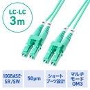 光ファイバケーブル OM3 10GBASE-SR/SW規格 10Gbps マルチモード LC×2-LC×2 メガネ型 2芯 ショートブーツ デュプレックス 50μm 3m