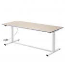 静電気の帯電防止、強い耐薬品性があり弾力性がある塩ビシート天板を採用した電動昇降デスク。天板耐荷重は100sで、物流倉庫での梱包処理や工場のメンテナンス作業などに最適な電動昇降デスク。幅180p。奥行75cm。