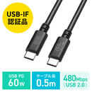 Type-Cケーブル USB2.0  480Mbps 最大PD60W USB-IF認証品 約0.5m ブラック