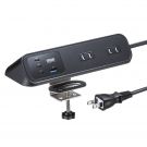 デスク上にアダプタや充電器が散らばり、作業スペースが狭くなる悩みを解消します。本製品はクランプ式でデスクの縁にしっかり固定でき、電源タップを浮かせて省スペース化できるため配線がすっきりします。前面・背面にAC差込口を分散し、大型アダプタも干渉なく使える快適設計です。
