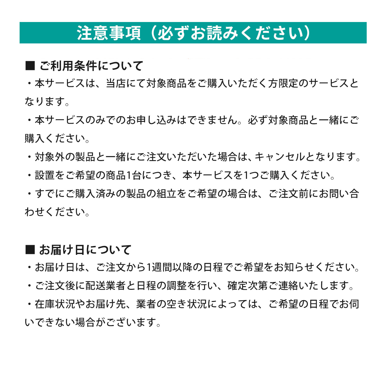 ・設置のプロが配送し、現地で開梱・組立・設置を行うサービスです。
