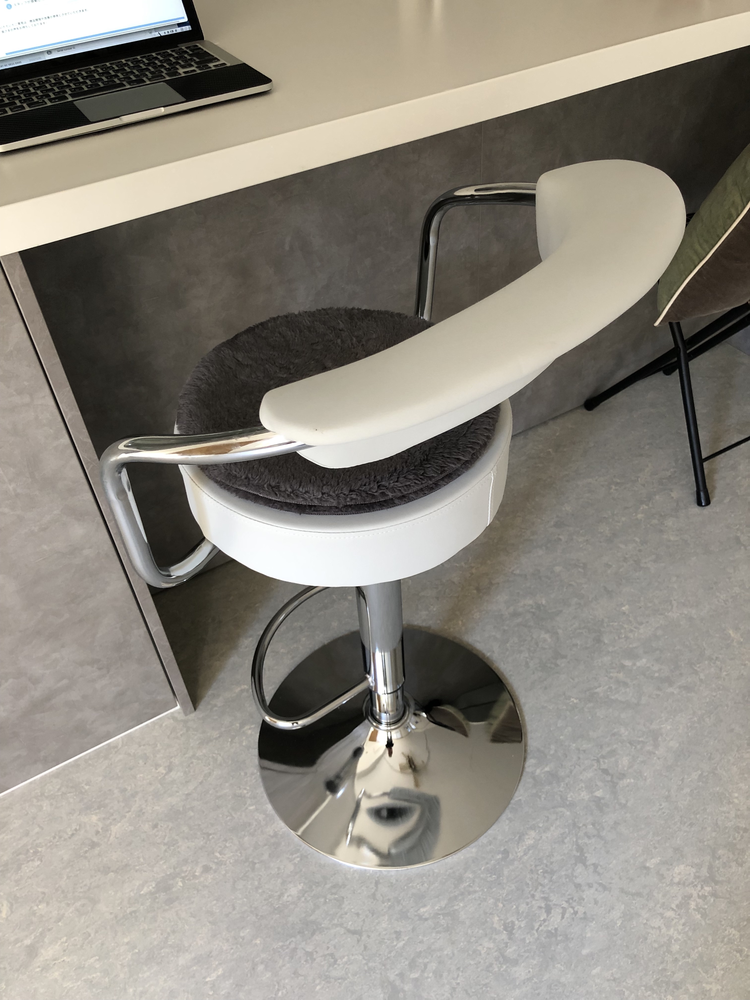 座り心地はまずまず。白のチョイスをしましたが汚れても拭けば綺麗になりそうでした。