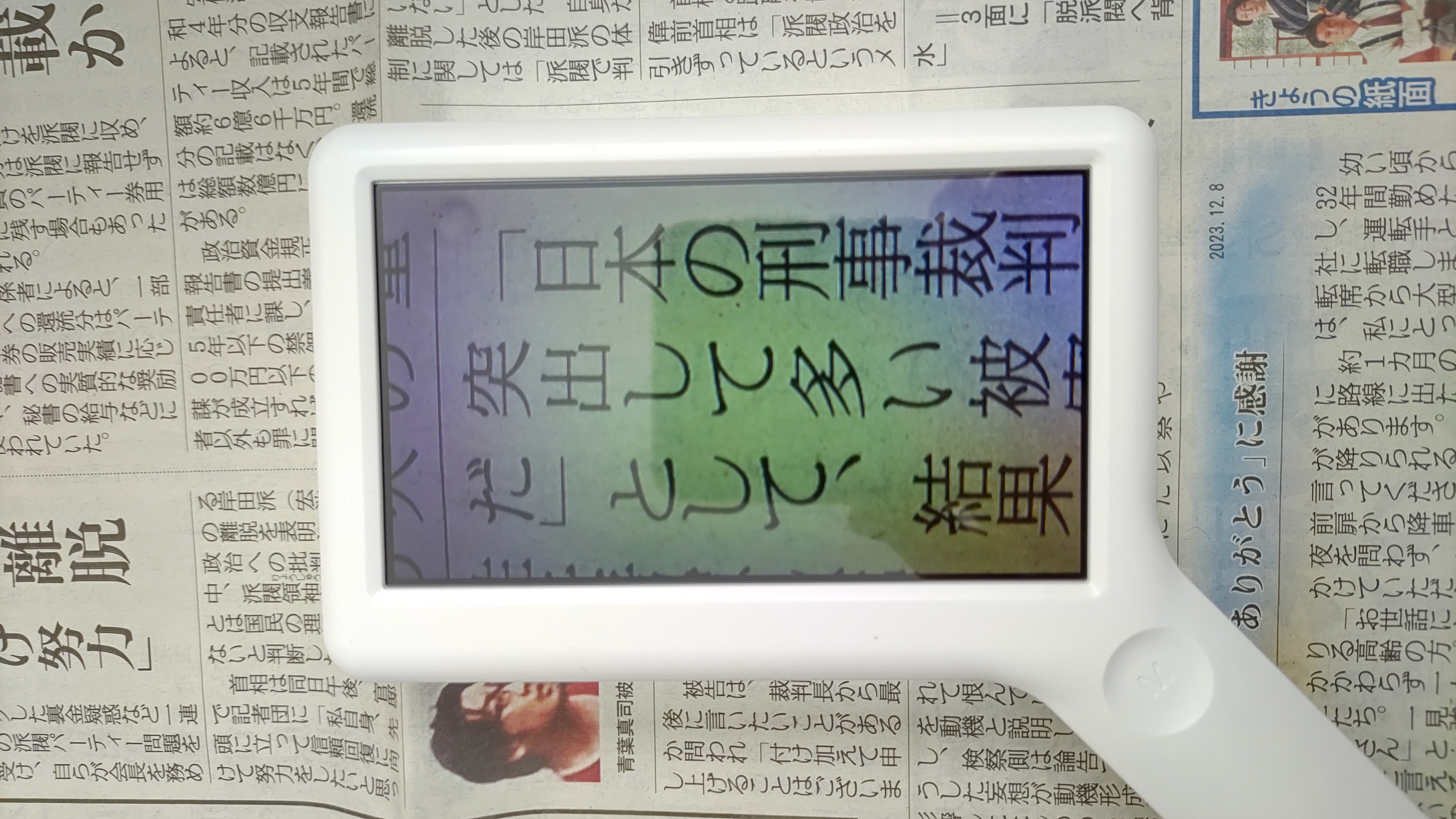 新聞の文字などを見るには、最小倍率でも大きすぎます。