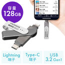 ユーザーレビュー > メモリ > USBメモリ > Lightning > 128GB > iPhone・iPad USBメモリ lightning-Type-Cメモリ Lightning対応 iPhone iPad MFi認証 スイング式 128GB