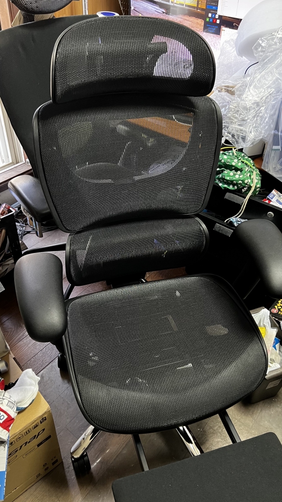 メッシュチェア オフィスチェア エルゴノミクスチェア 高耐荷重125kg シンクロロッキング ハイバック スライド式オットマン アームレスト 座面スライド 上下可動ヘッドレスト