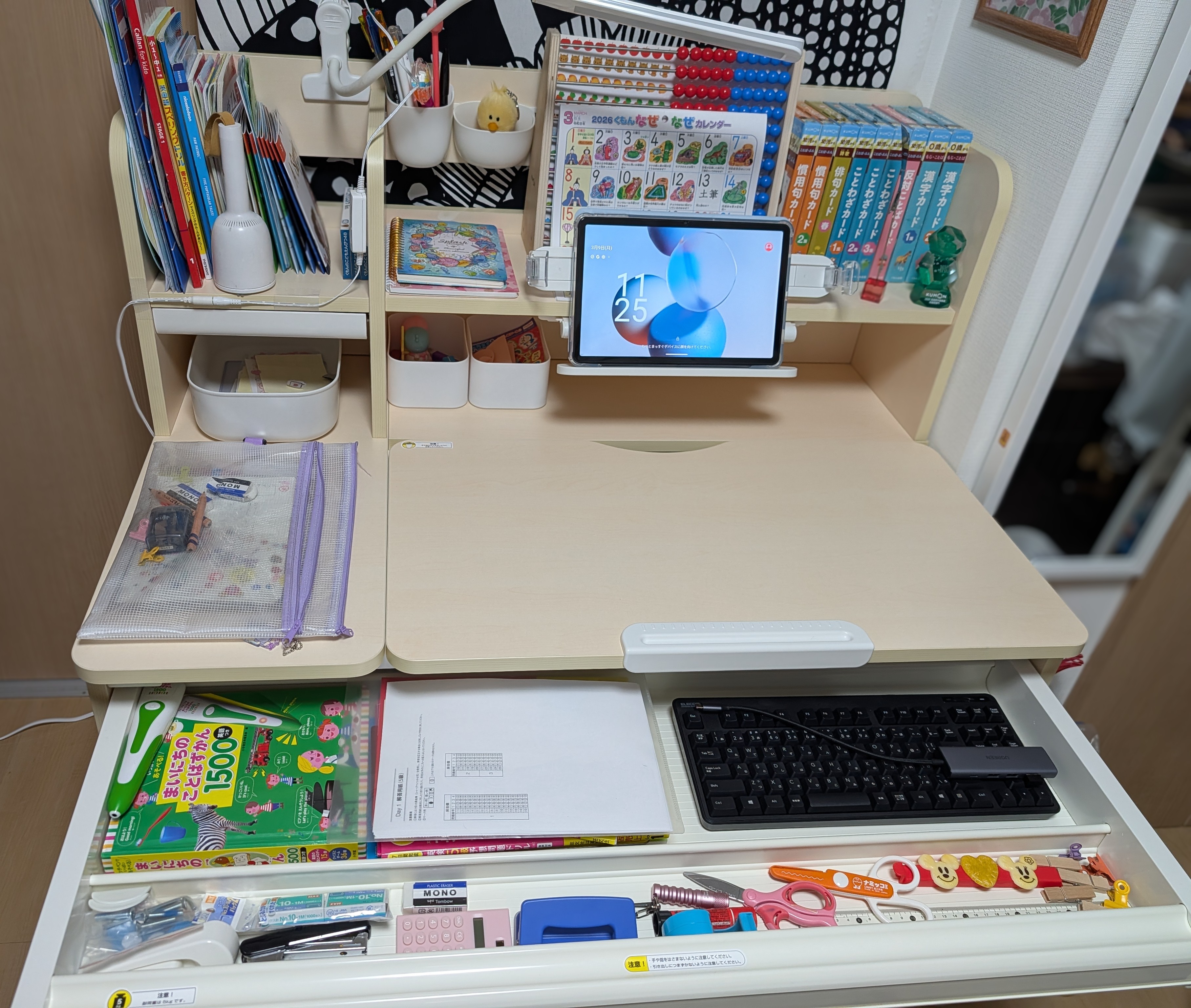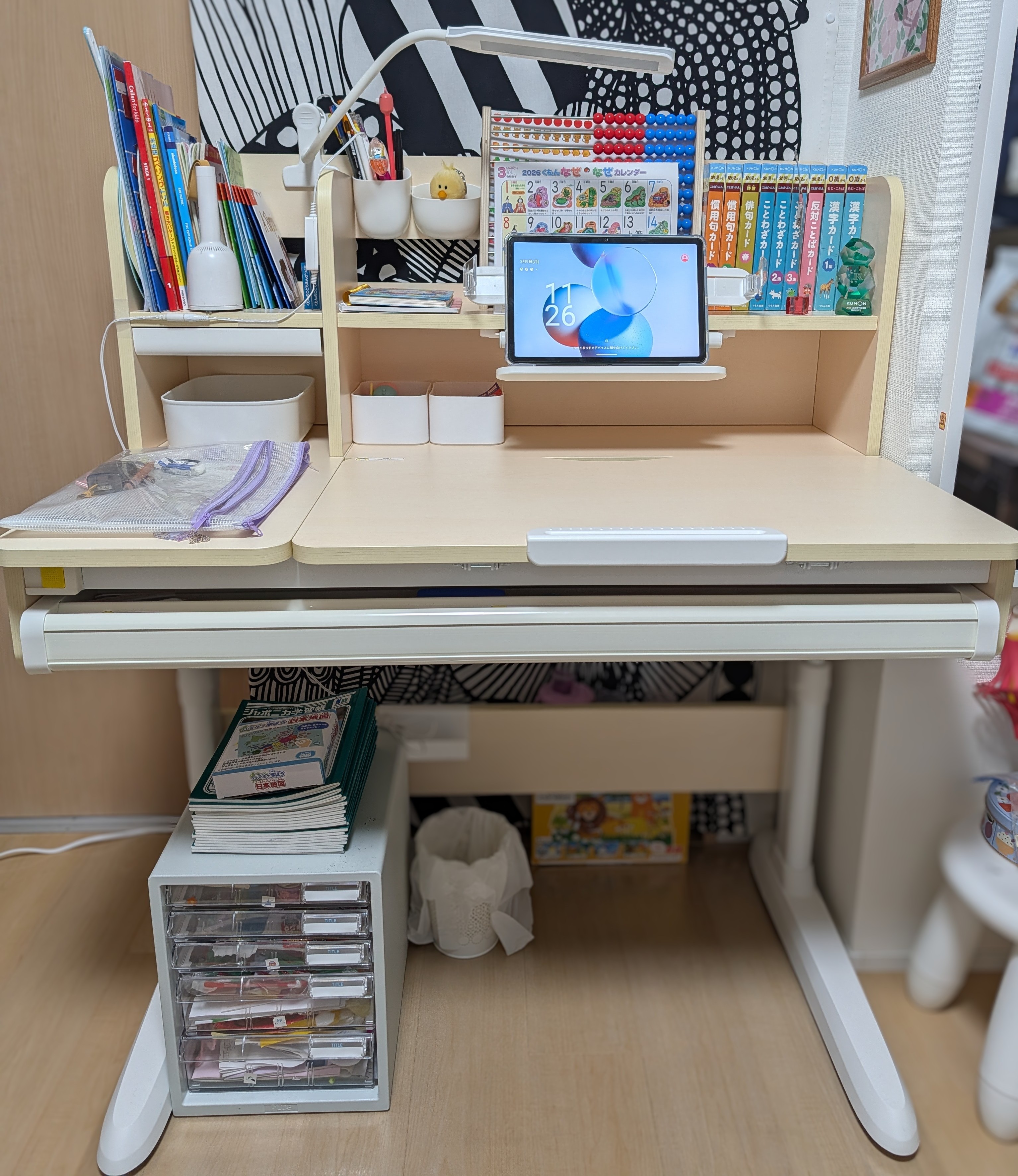 設置してみたら黒い物体と文字列のノイズがなくなり、白色の壁紙に溶け込ん