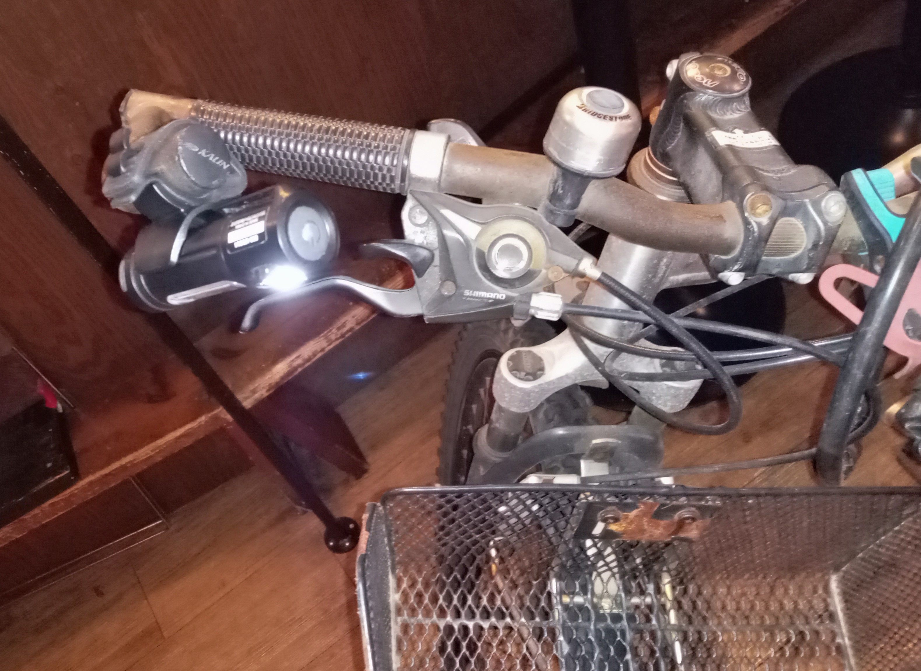 自転車のハンドルに取り付けると、前かごの荷物に当たっちゃうのを調節する範囲が少ないのが欠点かな。