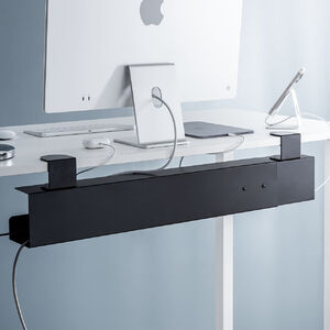 デスクに取り付けて、タップやケーブルなどを収納できるケーブル配線トレー。