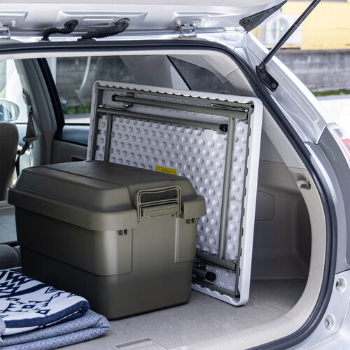 折りたたむことでコンパクトになり、狭い収納室や倉庫でも無理なく保管できます。学校や自治体など、収納スペースが限られた環境では特に重宝されます。縦置きや積み重ねが可能なため、限られた空間を効率よく活用でき、イベント終了後の撤収や整理もスムーズです。また、車載時にも場所を取らず、複数台をまとめて運搬できるため、学校行事やアウトドアイベントでの準備・片付けの負担軽減にもつながります。