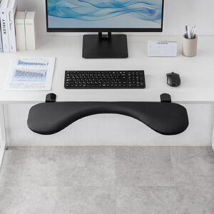机の天板にクランプでしっかり固定できる、後付けタイプのリストレスト。幅67cmのエルゴノミクス設計の肘置き台で、快適な姿勢をサポートします。厚み約2cmのクッションにはメッシュ素材を採用しており、肌触りが良く、長時間でも快適にお使いいただけます。