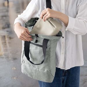 広げればトートにもリュックにも早変わり。肩掛けか背負うか、使う人のスタイルに合わせて2WAYで使えるから、どんな場面にもマッチ。通勤のおともにも、ちょっとした外出にも大活躍します。