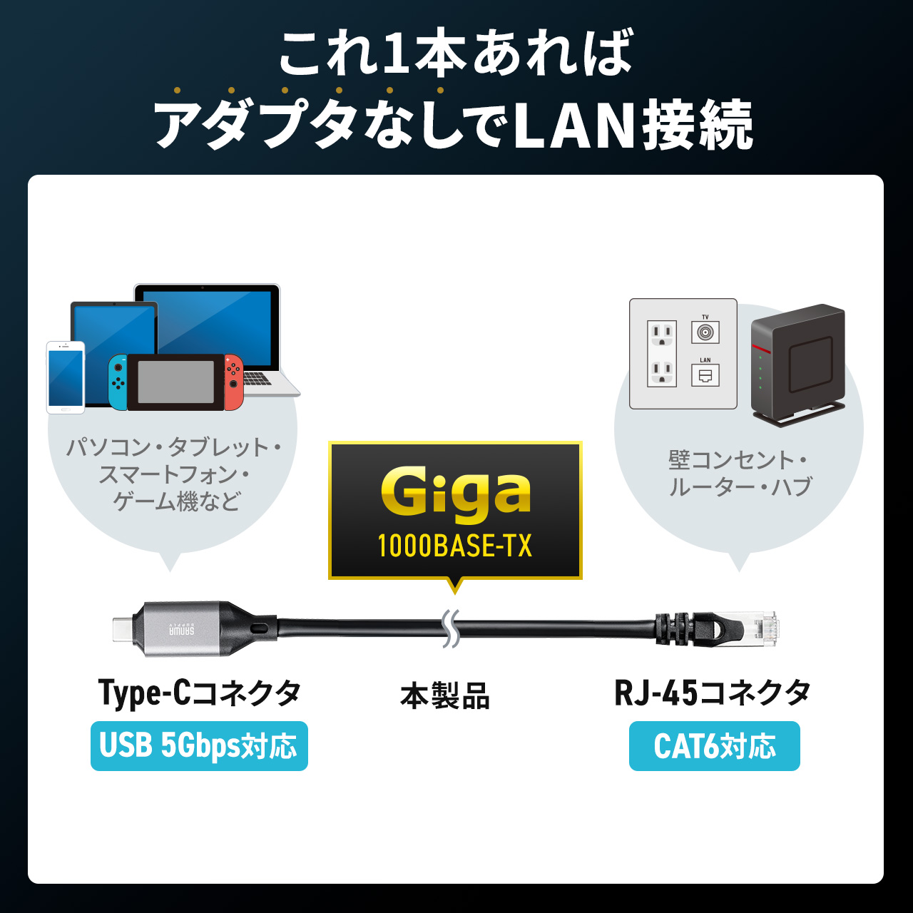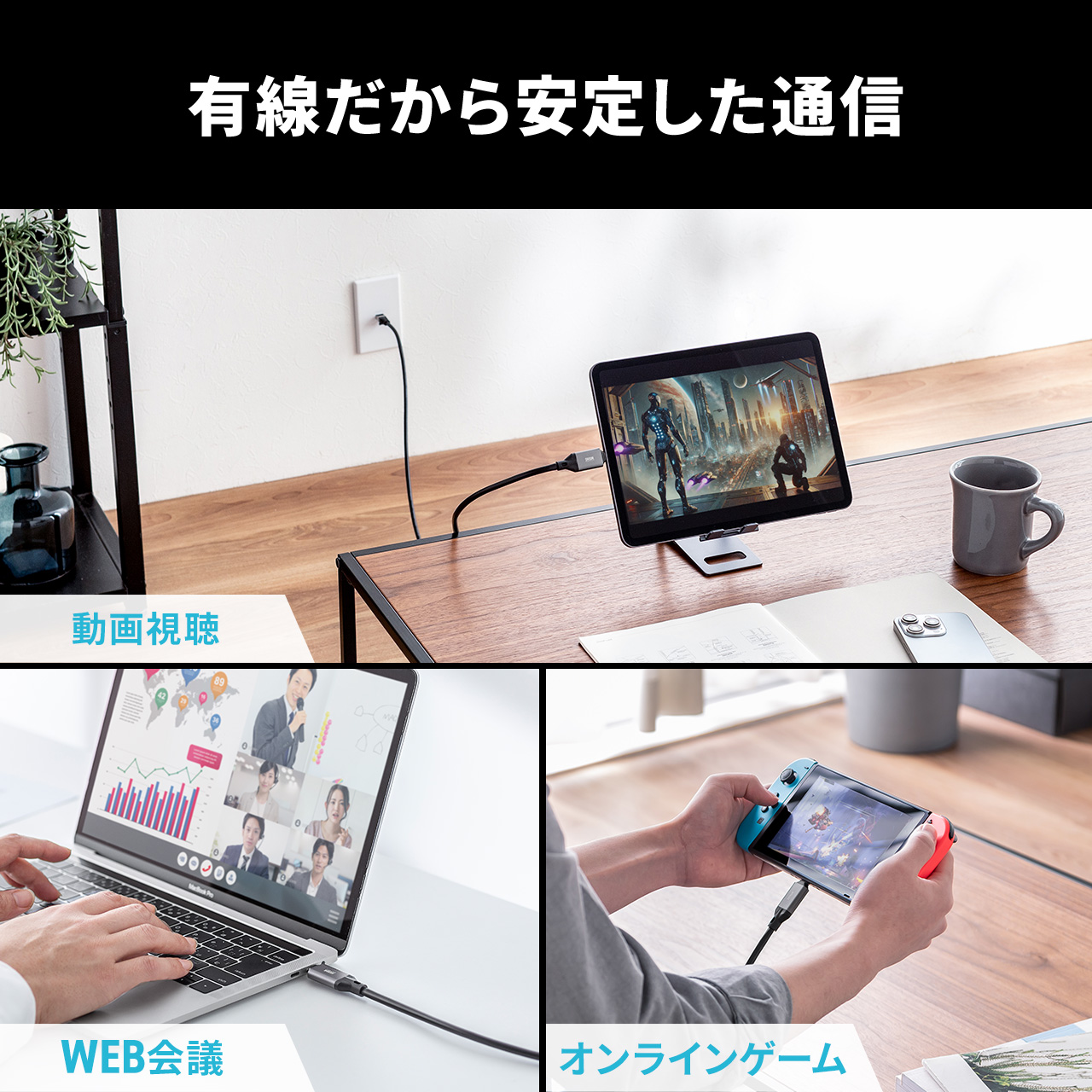 手軽に、確実に、通信環境をグレードアップ!あなたのType-C搭載デバイスに、最適な1本です。