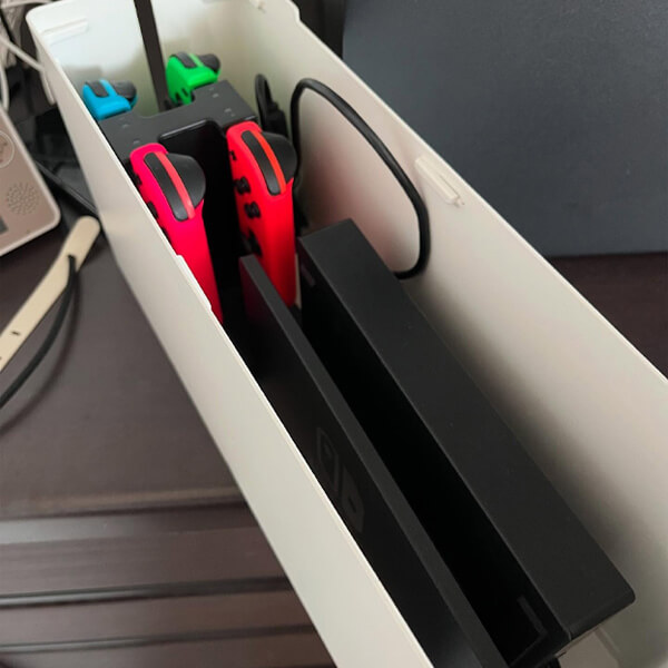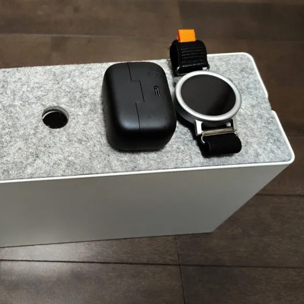 スマホやワイヤレスイヤホンの充電場所としても使えるようにしています。