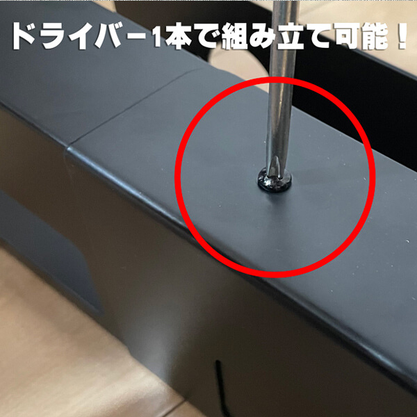 組み立てに必要なのはドライバー1本だけで、ネジは本体の固定に4か所、設置用に4か所の計8か所のみ。